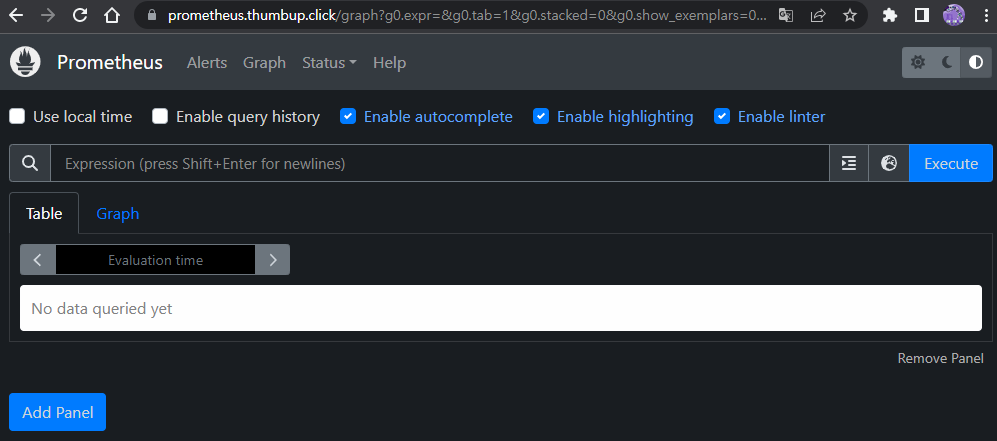 - 그래프(Graph) : 프로메테우스 자체 검색 언어 PromQL을 이용하여 메트릭 정보를 조회 -> 단순한 그래프 형태 조회