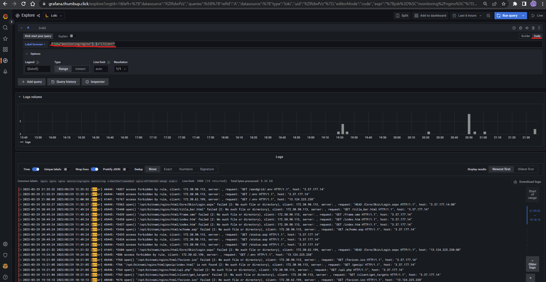 172.30.62.199 - - [29/Mar/2023:13:12:39 +0000] "GET / HTTP/1.1" 200 615 "-" "curl/7.88.1" "-"