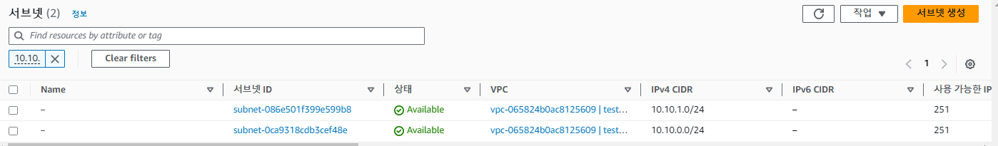 terraform apply시 에러가 발생되면서, 서브넷이 생성되지 않았다.