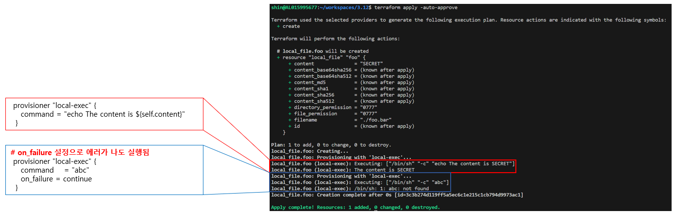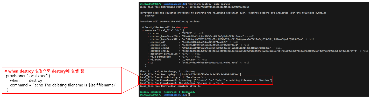 - local-exec 프로비저너: 테라폼이 실행되는 환경에서 수행할 커맨드를 정의 - 링크