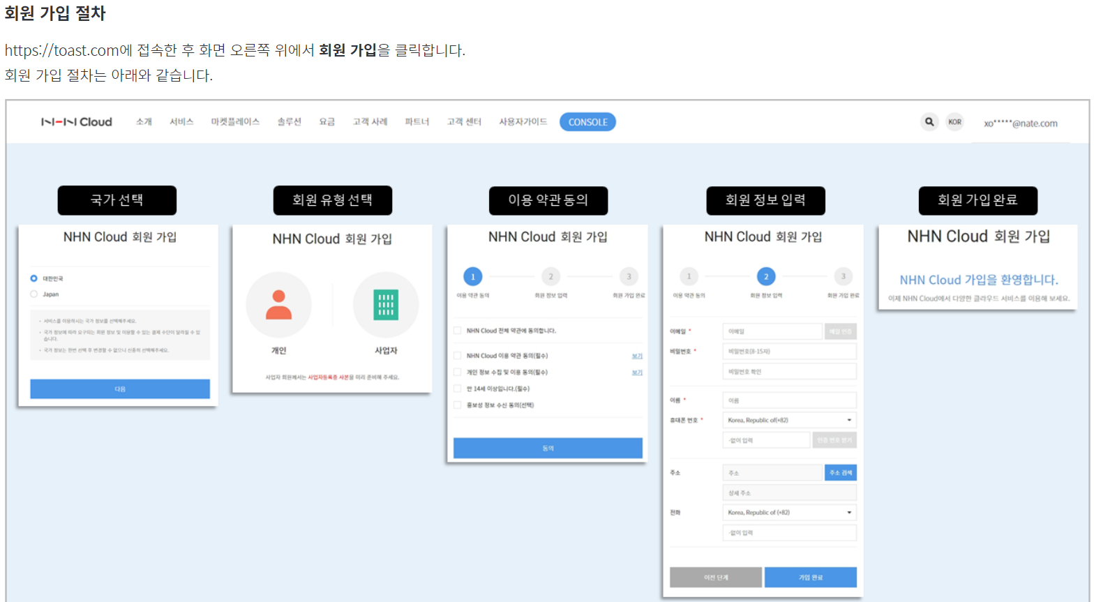 - 회원 가입 절차에 따라 계정 생성을 한 계정은 "NHN Cloud 회원"